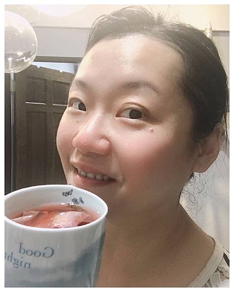 這壺烏梅茶正好陪我晚上寫稿用。滋味滿足,也不擔心熱量。我就著睡衣T恤加亂髮來一張夜半工作照_