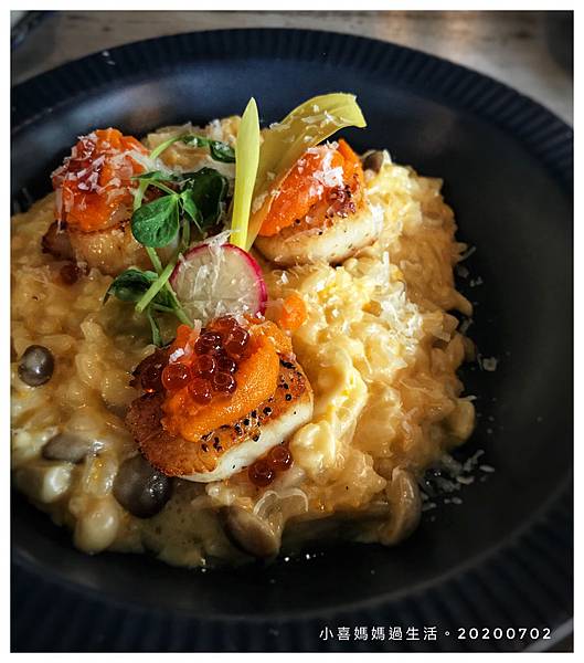 妮倒是吃了一個海膽干貝燉飯。我吃了一口飯,奶香不重不會膩,而且有食材的味道。她說很好吃。我還忍不住點了一杯鹹花生奶昔,鹹甜味道剛剛好,我下次若來應該還是會忍不住點。