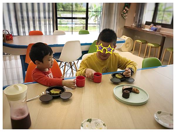 我們下午三點入住,先放行李休息一下,接著去樓下享用老闆娘拔辣媽準備的下午茶,我覺得用心的民宿老闆都很懂,預備的食材糕點都好好吃喔!