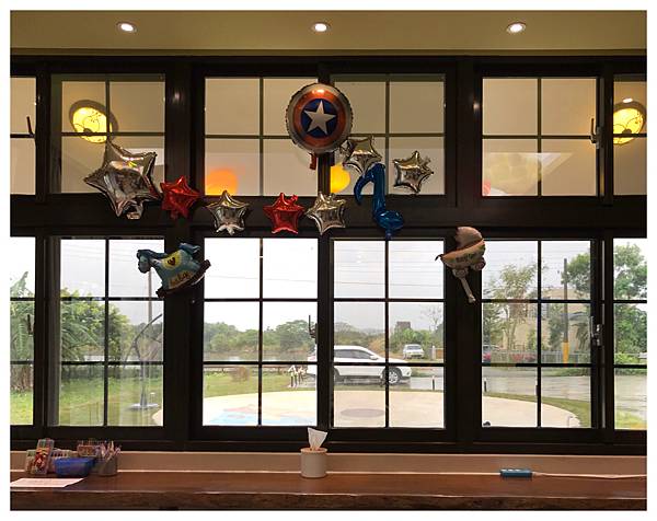一樓的空間很寬敞,用餐區兩面明亮大窗,盡收窗外好風景。另一邊是幼童遊戲區,有車車有Rudy,幼幼班們非常適合。還有投影幕讓爸媽可以放鬆看電影。