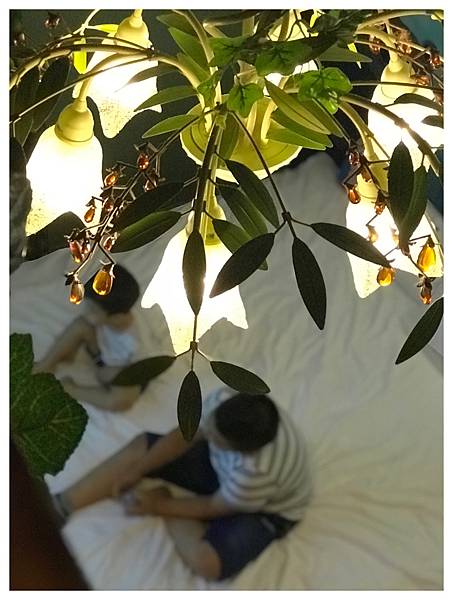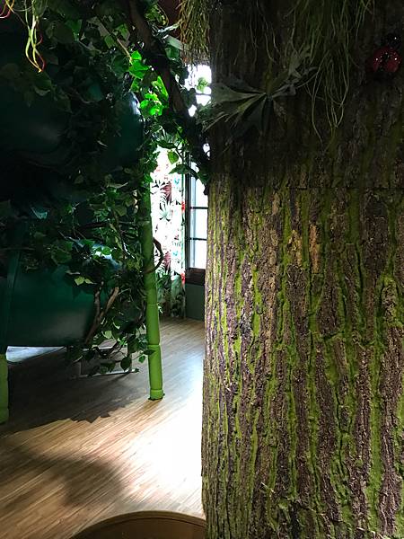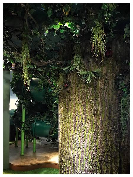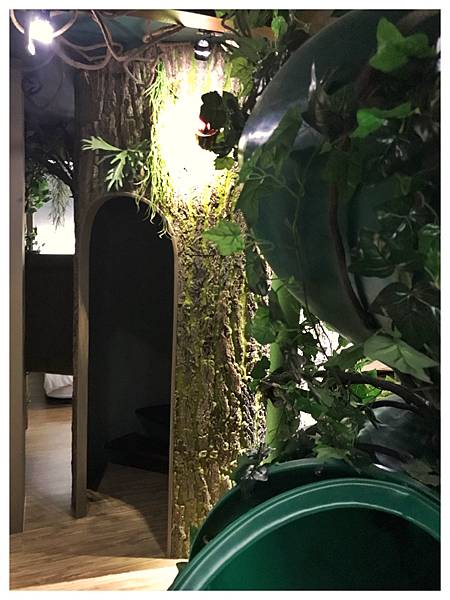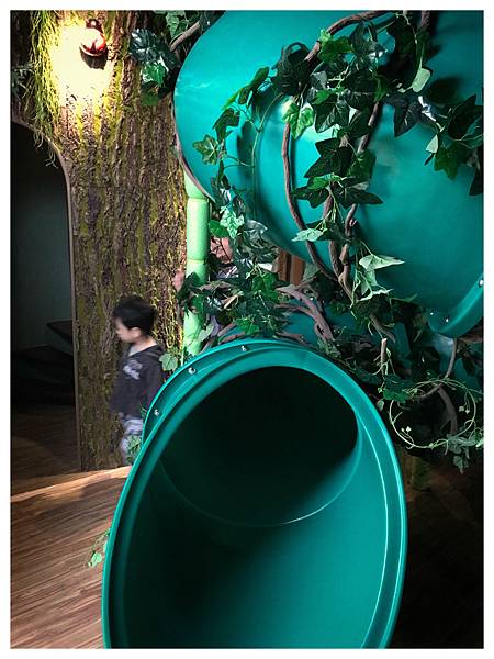 所以,她開了樹屋房型給我們看。房間裡就像個小叢林,這個樹屋不是小木屋,是真的有樹的感覺。裡面有一個兩層樓的旋轉溜滑梯,兩個孩子去各溜了一次~~~