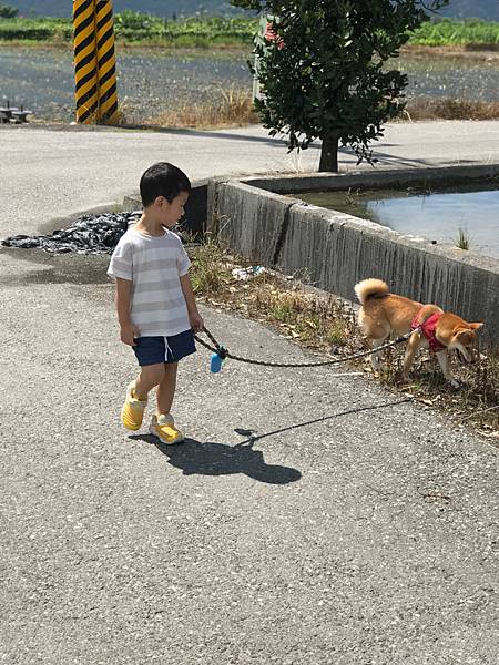 我覺得小喜牽抖抖好可愛喔!拔辣媽很放心的把抖抖交給小喜,也很罩的住小喜,小喜甜甜叫她姐姐,拔辣媽也是很開心。倒是我一開始很擔心,怕小喜把抖抖牽到水溝裡。