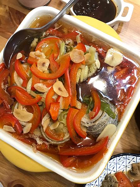 工欲善其事、必先利其器。這話真是有道理。看看這盤味噌醬油蒸白帶魚捲,小喜不吃辣,我當然不能切辣椒,所以我用紅椒代替。拿出番茄刀切起細條,配上青蔥,是不是也有模有樣??